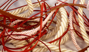 I nostri articoli comprendono gros-grain, doppio raso, taffettà, organza, fettucce in cotone lisce e spinate, nastri in lino e lurex, scozzesi, cordoni rigidi ed elastici.
